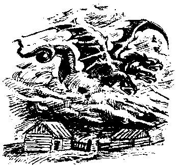 Нырнул он ко дну Пучай-реки и выплыл на другом берегу. Но нету у него ни копья острого, ни меча булатного. На том берегу остались. А Змей сыплет на Добрыню искрами, жжет пламенем, душит дымом. Огляделся Добрыня Никитич и увидел высокий курган. Своротил он шапку кургана, поднял над головой ком тридцати пудов весу и ударил Змея разом по всем трем головам.