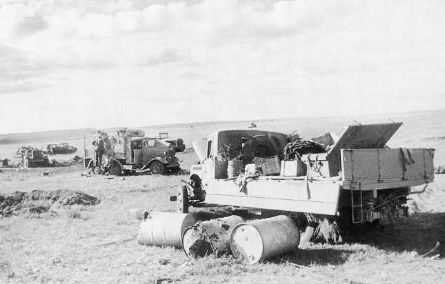 «С подходом к противнику я вел огонь из пушки, а во время ее заряжания и из пулемета. Хорошее попадание из пушки заметил только одно. Первый же снаряд противника, попавший в машину, убил пулеметчика и ранил водителя, загорелся бензобак. Слышу, второй снаряд разбил мотор. Я еще раз залез в башню, но противник повел огонь и по башне. Вижу, слева загорелись броневики Еремеева и Козлобородова и лейтенанта Самардака, а у меня на броневике отлетел весь перед. Я был в 150 м от окопов противника, решил машину оставить и ползком пополз назад в тыл».
