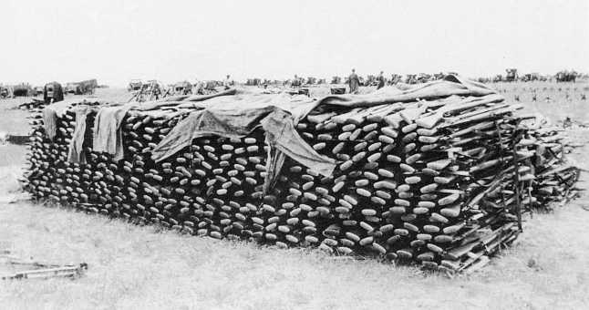 Пункт сбора трофеев 1-й армейской группы – на переднем плане штабель винтовок Тип 38 «Арисака» (ЦМВС).