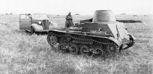 Японский легкий танк Тип 94 «ТК» из состава 3-го танкового полка Квантунской армии, захваченный в ходе боев 2–4 июля 1939 года. На заднем плане американский легковой автомобиль Chevrolet 1938 года модель Master series НА (АСКМ).
