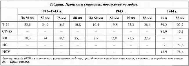 …Можно считать установленным, что в настоящее время основным снарядом танковой и противотанковой артиллерии является бронебойный снаряд калибра 75–88 мм. Применение основных калибров и типов снарядов против наших танков настолько невелико, что с ними можно не считаться.