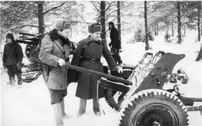 Командиры Красной Армии осматривают 37-мм противотанковую пушку Pak 35/36. Район Тихвина, декабрь 1941 года (АСКМ).