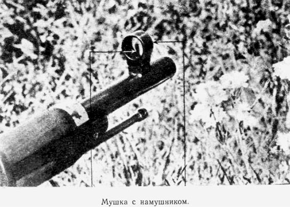 Значит, опять-таки приходится вводить «поправку». Для этого во время пристрелки передвигают мушку чуть влево: пуля идет правее и попадает как раз в цель.