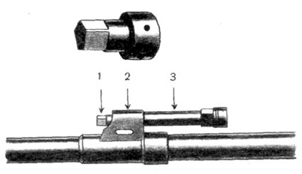 Открытым концом трубочка входит в газовую камору. Поворачивая пятигранную головку ключом, можно любую дырочку установить так, чтобы она прижималась как раз к газовому отверстию, которое ведет из канала ствола в камору. Чем больше будет дырочка, тем больше газов попадет в патрубок и цилиндр и, значит, тем сильнее ударит в затвор толкатель.
