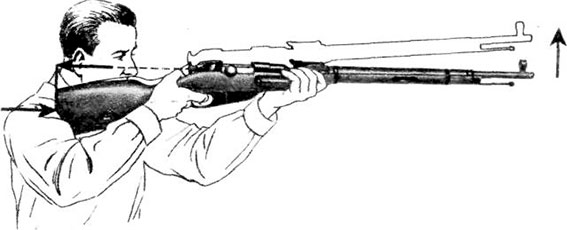 Эти две силы, образующиеся при выстреле, подкидывают ствол винтовки вверх.