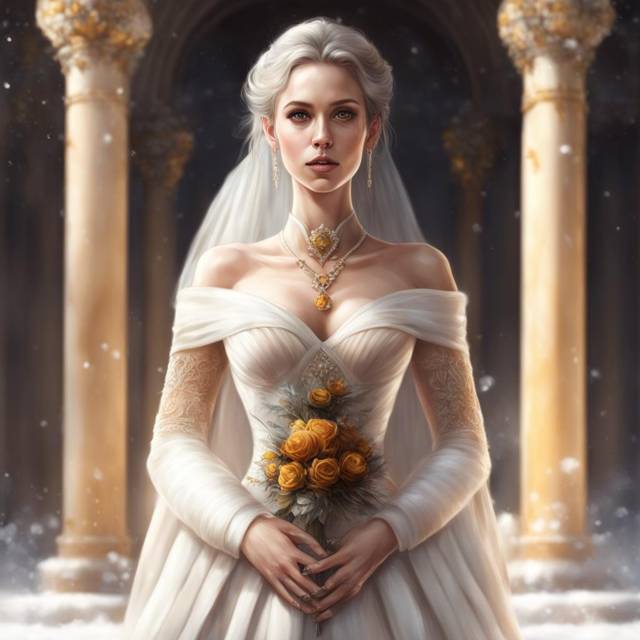 Ведомая под руку престарелым мужчиной меж рядов каменных скамей шла она. Белоснежное платье с длинным шлейфом и легкими рукавами подчеркивало невероятную бархатную кожу. На шее сияло огромным теплым солнцем янтарное ожерелье. Лицо ее было сокрыто вуалью и фатой, лишь виднелись распущенные по плечам золотые локоны. А на голове как знак и отметина – водружен массивный золотой венец. Я знал, что впервые Правительницы надевают Семейные венцы, выходя замуж. Она не шла, а плыла, гордо, стремительно, как зимний ветер.