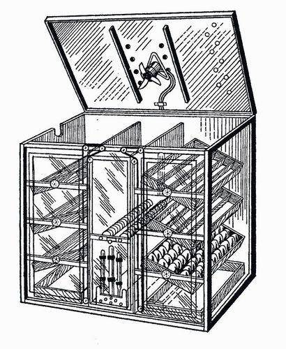 При создании инкубатора я не стал сильно мудрить, а просто взял за основу самодельный аппарат моего соседа по даче из прошлой жизни. Пересекались мы с ним часто, особенно летом. И я успел и вдосталь насмотреться на это чудо техники, и неоднократно выслушать инструкцию как, чего и куда. Просто увеличил размеры короба и добавил несколько лотков. И получился инкубатор на три сотни яиц с ручным приводом для вентиляции и поворачивания яиц.