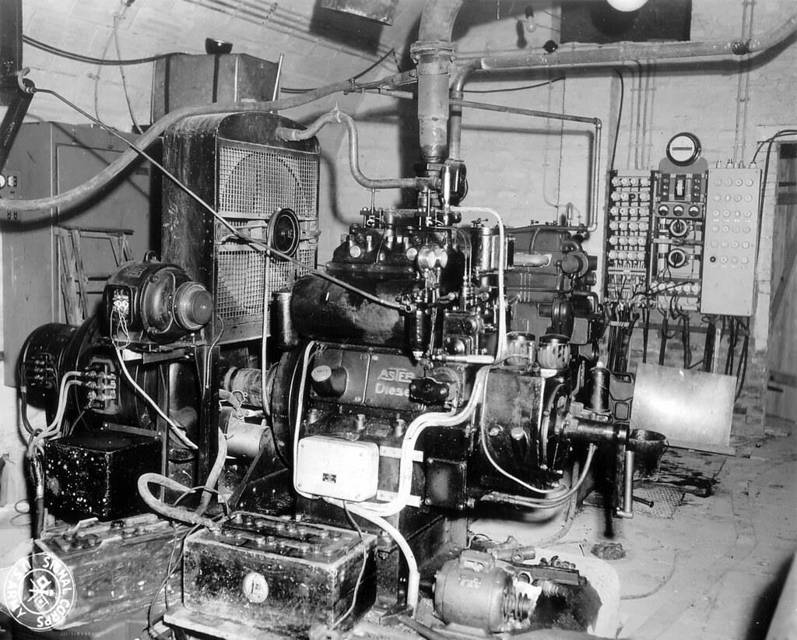 Решив, что с этим направлением все понятно отправился в обратную сторону. Здесь я увидел тоже самое гораздо ближе, правда перед самым завалом, обнаружилась еще одно помещение в котором нашлась огромная установка с дизельным генератором тока. Здесь имелись два довольно больших дизельных двигателя и приводами на генераторы, несколько аккумуляторов в деревянных ящиках, для обмотки возбуждения, множество самых различных приборов, на огромном щите, возле стены, и огромная цистерна, по самой скромной оценке тонн на двадцать топлива, с трубопроводами, поднимающимися куда-то наверх, и подведенными к дизелю. Все это, как и сам коридор было покрыто огромным слоем пыли. Постучав по стенке топливного хранилища услышал звук, явно говорящий о том, что бочка далеко не пустая. Пройдясь по комнате, заглянул во все углы, и не найдя ничего интересного для себя, отправился в обратный путь.