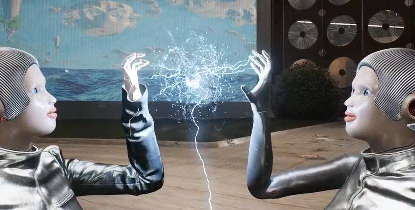 Руки Терешковых поднялись, предплечья заняли вертикальное положение, между кистями сложенными лодочкой появился светящийся сгусток полимерных монополей, раскидывавший в разные стороны искры паразитных потерь. Мгновение… и он запульсировал, увеличиваясь и уменьшаясь в размерах, искры оплели кисти роботов перетекая на их предплечья, струящийся поток молний уперся в пол атриума. С видимым напряжением Терешковы свели ладони, впитав полученный сгусток монополей.