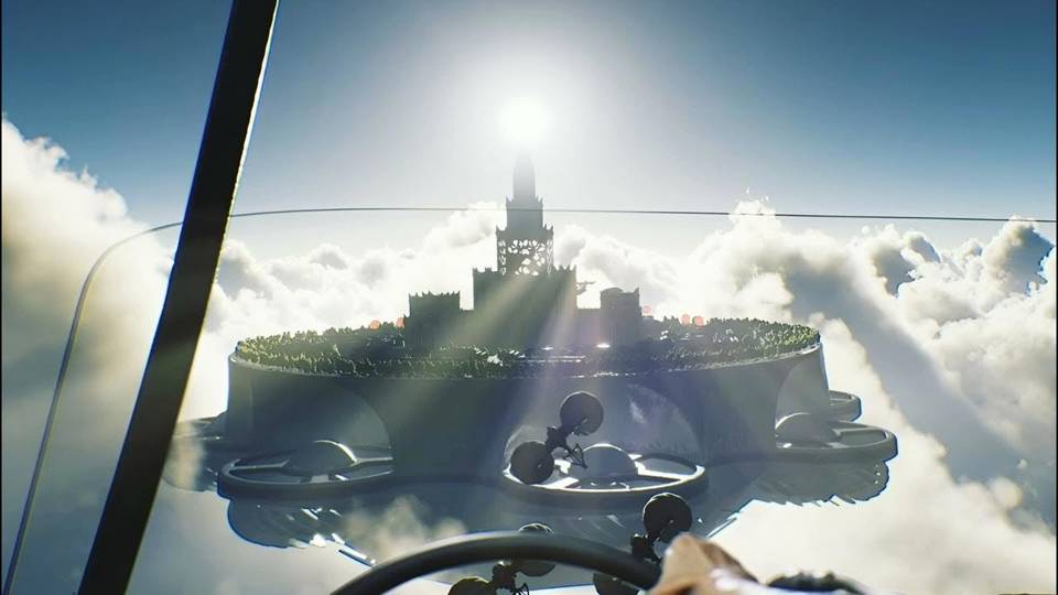 Из тумана выплыла огромная статуя красивой женщины, воздевшей меч в одной руке и модель атома в другой. Помолчав несколько секунду я ткнул пальцем в сторону одной из летающих платформ.