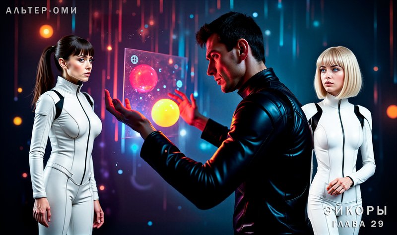 Вдруг всё исчезло, и на панели вспыхнули две светящиеся сферы – жёлтая и красная. Жёлтая сфера, размером с кулак, пульсировала мягким, почти живым светом. Рядом с ней парила красная. Её холодный, безжалостный свет напоминал сердце умирающей звезды.