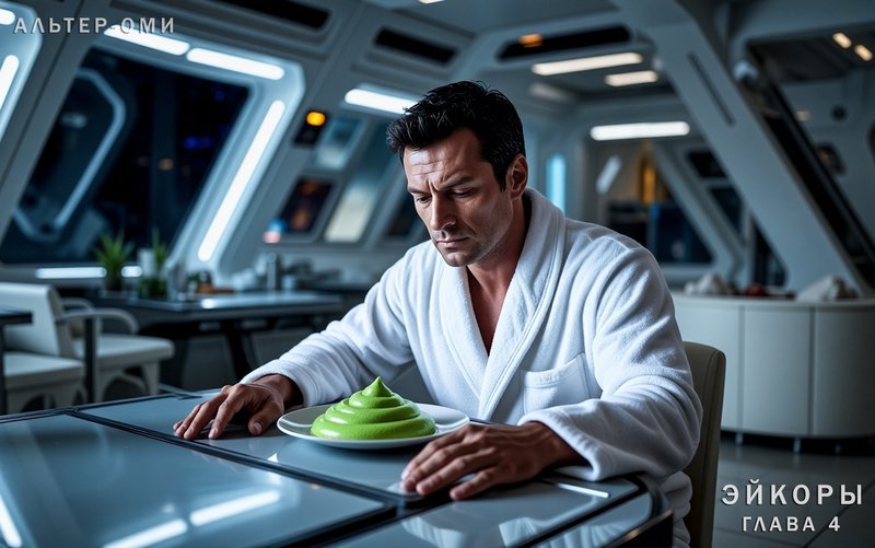 Вокруг всё выглядело идеально – и явно не было похоже на жилище простого человека. Слишком чисто. Слишком правильно. Слишком… Но прежде чем он успел что-то сказать, стол изменился: серая блестящая поверхность сменилась белоснежной столешницей, на которой стояла тарелка с непонятной массой.
