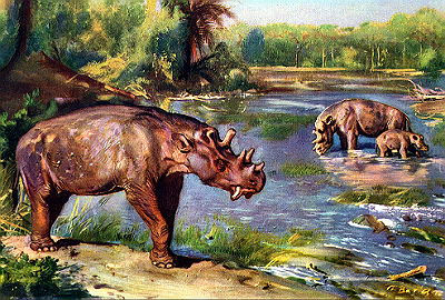 Несколько огромных животных, выглядевших как симбиоз носорога и гиппопотама пришли на водопой. Зайдя «по колени» в воду, они жадно пили, периодически поднимая голову и оглашая воздух тем самым ревом, о которого у Сергея чуть не лопались уши.