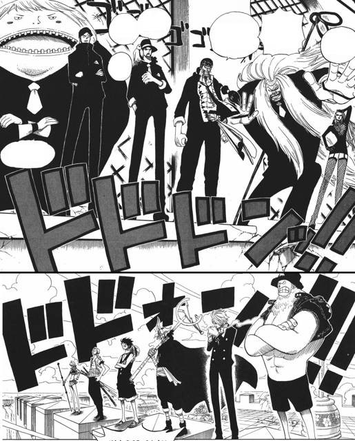 К тому времени Мугивары перебрались на ту сторону разводного моста, оказавшись в одной башне с агентами, перелетев на Море-поезде, что вызвало искреннее удивление у Кудзана. Затем они разделились и начались локальные бои, первым из которых завершился…