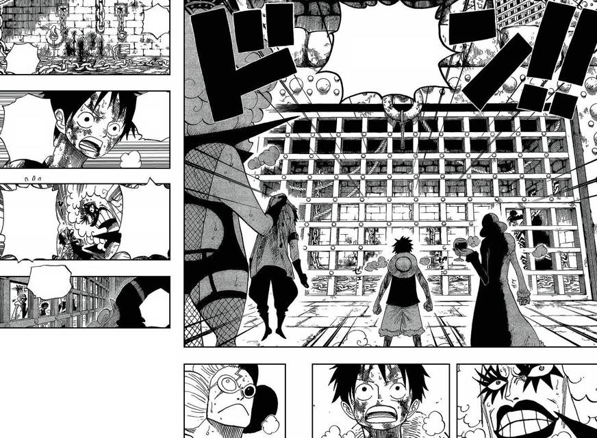 Вдруг входная дверь заблокировалась, а помещение начал заполнять усыпляющий газ, но благодаря способностям товарищей Монки Д. Луффи удалось избежать поимки, только возникла новая проблема – они оказались в тупике.