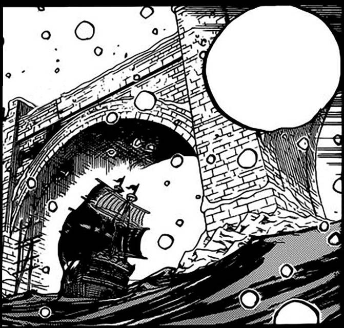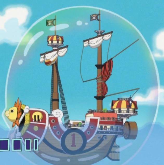 Робин поведала мне, как оказалась на Текила Вульф. Мугивара, как и было в оригинале, вмазал одному из Тенерьюбито в Аукционном доме, но оттуда им легко удалось уйти невредимыми. Только они с командой не могли продолжить путешествие из-за одной проблемы. Для отправки на Остров Рыболюдей, корабль нужно было покрыть специальной смолой, чтобы его не расплющило слишком большим давлением. Подводный остров расположен на глубине в 10 000 метров. Да и дышать всё время погружения тоже чем-то нужно… Выглядит покрытие как большой мыльный пузырь, в который целиком помещается корабль.