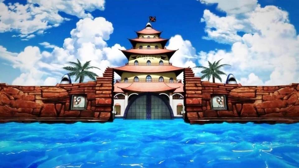 Здание в Китайском стиле внушало… Понимаю, что в мире Ван Писа нет Китая, но выглядело оно именно так. Особенно эти закругленные крыши с острыми концами так и навевают воспоминания из прошлой жизни. Само здание располагалось рядом с морем и огорожено было высоким забором. А из-за забора доносился сильный гам…