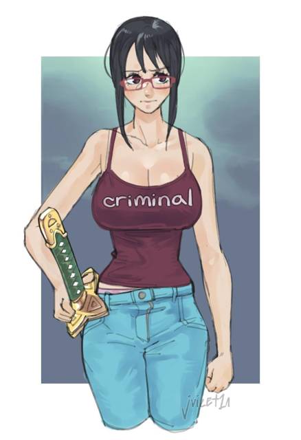 Похоже девушка и есть лидер этой группы. Она сильнее всех собравшихся. Девушка девятого уровня, чуть слабее Арлонга двухлетней давности. А еще у нее есть фрукт: Они Они но Ми. Что-то связанное с демоном? Потому у нее странного цвета глаза и рожки на голове? Но ей определенно идет… Остальная команда – слабаки, самые сильные еле добираться до среднего дозорного и все они мужики. Это её личный гарем?