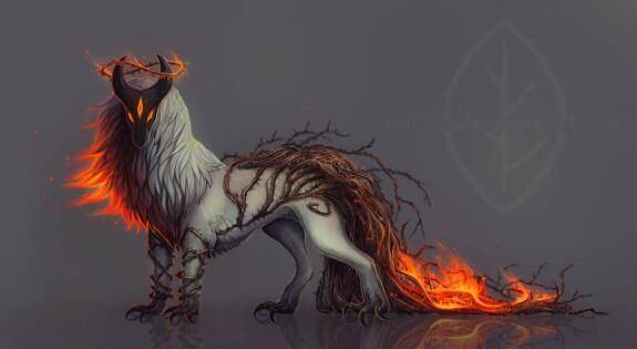 Дом по соседству, который ощущался пустым, резко разбился вдребезги, и из стены выбежало подобие большого пса с горящей гривой. Спину этого объекта украшали острые ветви, они ниспадали вниз и образовывали хвост, тоже покрытый частичками пламени. Ещё пара таких резко показалась на вершине завода и около красной реки.
