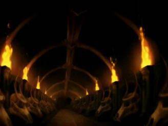 – Только прошу… ничего не сломайте, катакомбы драконьей кости не предназначены для сражений, – становилось всё более загадочно и волнующе, он повёл нас по узенькому спуску, где пришлось плестись друг за другом. На стенах были выгравированы трудно различимые фрески с историей и мифами народа огня, а потом же мы предстали перед длинным коридором…и его вид вовсе перехватил моё дыхание. Куча костей древних существ были проложены у нас под ногами, вдоль стен ровными рядами были расставлены черепа драконов, над которыми горели жаровни, а на потолке был один гигантский позвоночник с рёбрами, являющийся трофеем времён великой охоты на драконов.