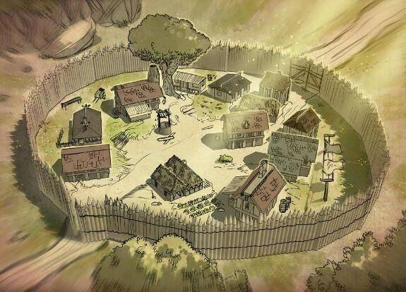 Остановившись на небольшом утёсе, с которого открылся вид на небольшое такое окружённое солдатами и частоколом поселение, по которому бродило от силы человек тридцать, все спутники повернулись ко мне.