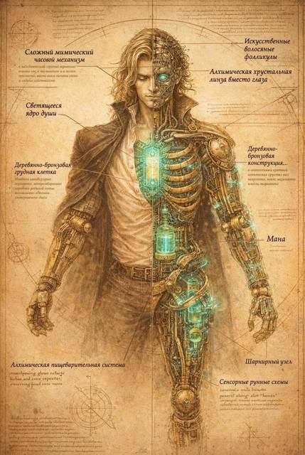 Описание: Элитная модель для дворянства, проходящего службу в магических войсках. Сочетает облегченный каркас из зачарованной бронзы с усиленными сервоприводами для сверхчеловеческой реакции. За счет искусственной кожи и продвинутой мимической механики внешне неотличима от человека.