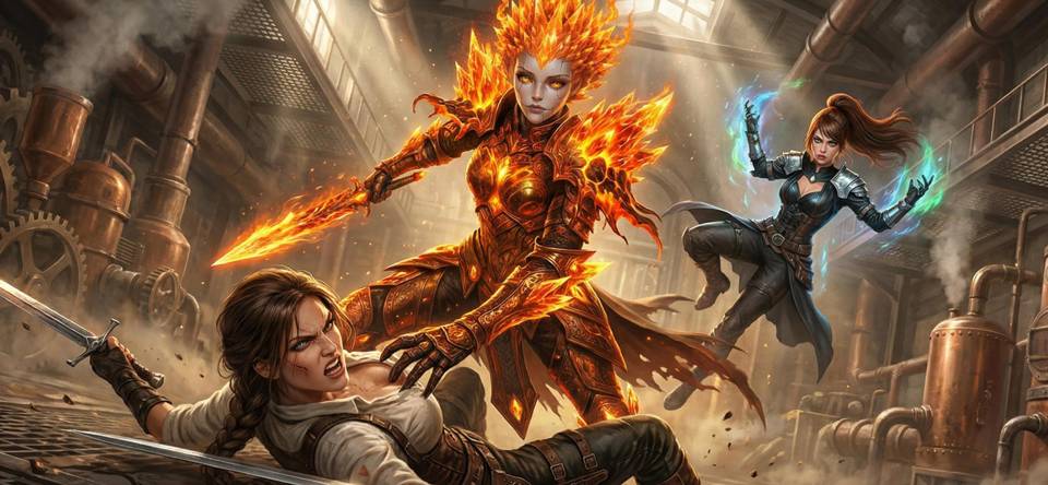 Рейна застыла в прыжке, Элис – в глубоком выпаде, Синта – в защитной стойке. Воздух вокруг них звенел, как натянутая струна.