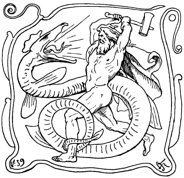 Ёрмунганда еще называли «Змей Мидгарда», что говорит о том, что первоначально Змей был позитивным элементом пространственной системы мироустройства в северной мифологии. Но в последней битве перед гибелью мира Тор и Ёрмурганд сражаются насмерть. Тор убьет змея, но и сам погибнет от яда.
