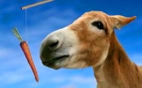 Морковку подвешивают перед мордой осла, он к ней вожделенно тянется и тянет телегу. Ну а для того чтобы он тащил ее быстрее и в нужном направлении – нужна палка. И не факт, что осёл, когда-нибудь вообще получит морковку вкусную за свой труд, поскольку овощ этот является многоразовым средством производства, его виртуальным инструментом. А если и получит, то это будет зависеть явно не от усилий осла и его способностей, а от каких-то непрогнозируемых причин. Если бы осла научили логике, он бы объяснил эту зависимость трансцендентностью и нелинейностью.