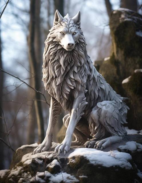 Это были каменные волки, размером в два человека, они сидели на постаментах и словно бы охраняли город позади.