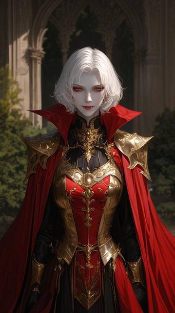 Однако, помимо вампирских клыков, которые Алиса даже не пыталась как-то скрыть, на женщине ещё и был красный «плащ Дракулы», дабы всё было совсем уж очевидно. И, конечно же, как и Владычица на портрете, Алиса просто ослепляла обилием золотых украшений.