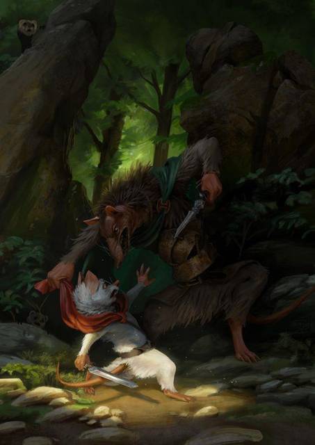 Первый крысиный отряд состоял из классических кобольдов. И стоило только этим здоровенным крысам разглядеть в поднявшихся клубах пыли силуэты двергов, как они тут же попятились от своих «природных врагов». А второй отряд состоял из более мелких белых мышек, которые с удивлением смотрели на незваных гостей. Кажется, что эти мышки впервые в жизни увидели двергов и эльтиров.