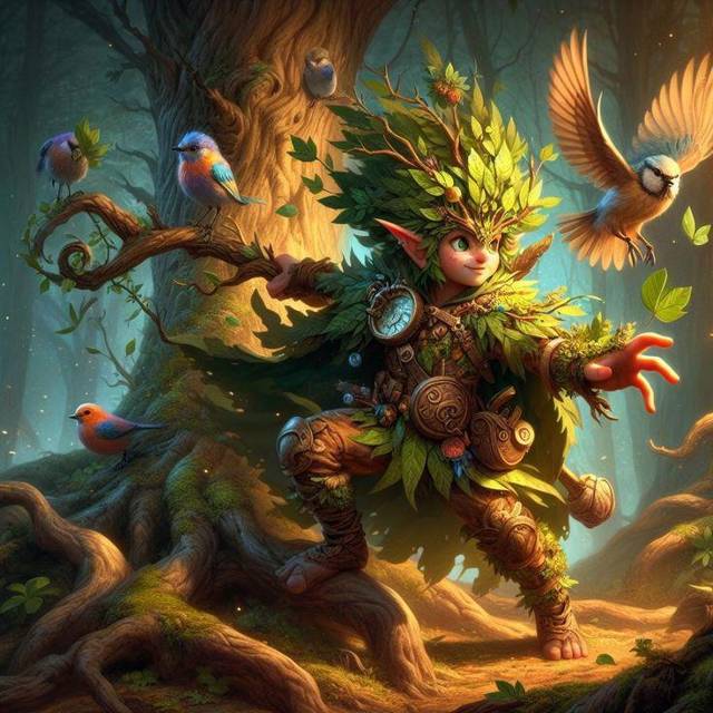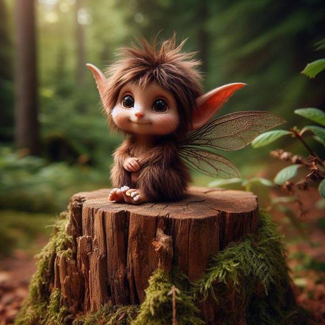 Когда загадочное существо всё же смогло успокоиться и отлипнуть от дриады, то выяснилось, что это был маленький лесной фей (именно мужского рода). Описать это сказочное существо можно было как маленького человечка, покрытого густой и длинной шерстью. А за спиной у этого сказочного существа были стрекозьи крылышки. И в целом, этот маленький фей почти идеально сливался с пнём.