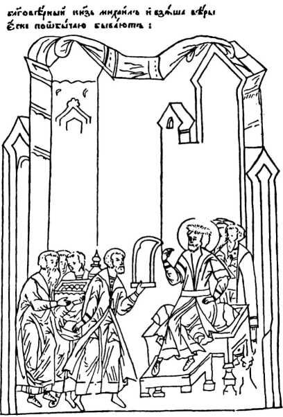 «Письмоносец». Рисунок из списка Жития и службы преподобных Ефросинии и Евфимии Суздальских. Собрание Научной библиотеки МГУ, № 686/969, 3-я четверть XVII в., л. 20.