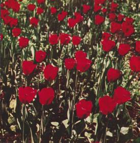 Обычно на ней больше всего поражают розы. Бархатисто мерцают темно-красные цветы, ярко горят пламенно-алые, мечтательно поднимают головки нежно-розовые, солнечным теплом веет от желтых. А рядом – бело-розовые купы азалий, живописные, пастельных оттенков герберы, источающие тонкий аромат фрезий, их высочества орхидеи… Тяжело опускают головки гвоздики всех цветов. Словно балерины в менуэте Моцарта, изящно выстроились тюльпаны.
