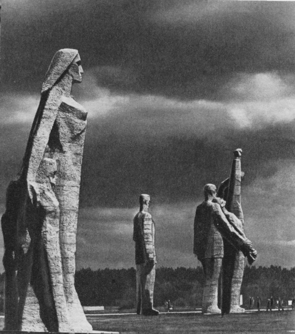Недалеко от Риги расположен Саласпилс. На поле, поросшем зеленой травой, высятся группы белых фигур. Вот мать заслонила собой детей. Узники, поддерживая друг друга, бесстрашно глядят в лицо смерти. В годы второй мировой войны здесь были замучены граждане многих национальностей – латыши и русские, чехи и поляки, немцы и австрийцы. Саласпилс… Его называют в одном ряду с Освенцимом, Маутхаузеном, Бухенвальдом. Во время фашистской оккупации на этом месте находился концентрационный лагерь, где загублено свыше 100 тысяч человеческих жизней. Сейчас на месте бывшего лагеря создан мемориальный ансамбль. В год столетия со дня рождения В. И. Ленина авторы ансамбля в Саласпилсе – скульпторы Л. Буковский, О. Скарайнис, Я. Заринь и архитекторы Г. Асарис, О. Остенберг, И. Страутманис и О. Закаменный – были удостоены Ленинской премии.