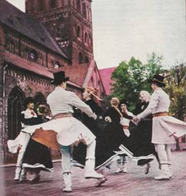 Традиция певческого праздника немолода. Первый всеобщий Праздник песни состоялся в Риге в 1873 году. Значит, в 1973 году мы отметим его столетие. Но никогда раньше певческий праздник не знал такого размаха, как в послевоенные годы Советской Латвии. В минувшем Празднике песни и танца в 1970 году приняло участие 245 хоров с 12 200 певцами, духовые и симфонические оркестры с 1220 музыкантами. На праздник прибыло 20 народных танцевальных ансамблей, 102 молодежных коллектива и 20 коллективов пожилых танцоров с 2176 участниками. Вообразите себе грандиозный объединенный хор на Большой эстраде, весь в в красочных переливах этнографических костюмов. Вообразите, как этот тысячеголосый живой инструмент вздымает песню, обретшую могучие крылья, над вершинами сосен Межапарка. Как ни просторна праздничная эстрада, разместить на ней изумительный узор танца объединенных коллективов невозможно. Их выступления обычно проходят на больших стадионах Риги.