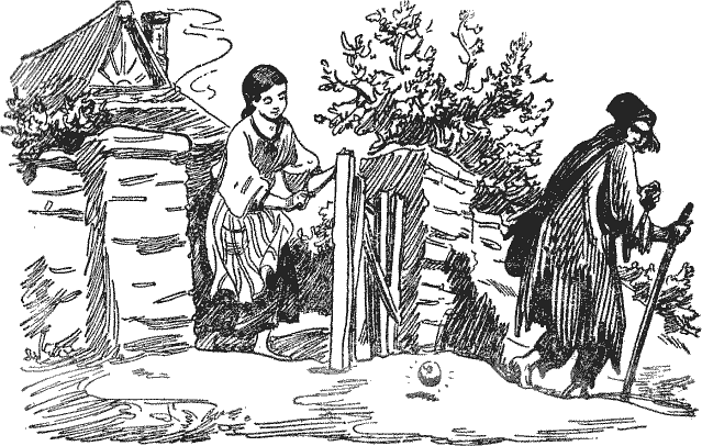 В одной деревне, на самом краю, жила вдова, и были у этой вдовы три дочери. Раз пришел вечером в ту деревню нищий и стал ходить из дома в дом – ночевать просится. Только больно уж был он оборванный, никто его пускать не хотел. Под конец подошел он к тому крайнему дому.