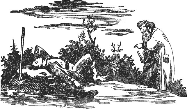 Сказано – сделано. Окончив работу, лег он себе на новую могилу отдохнуть и заснул. И пригрезилось ему, будто стоит возле него старый-престарый старик в длинной одежде, показывает пальцем на поляну и говорит: