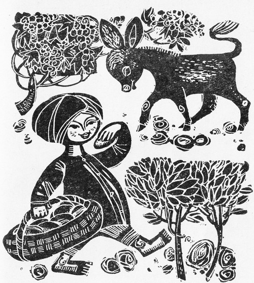 Тогда монах, открыв дверь кельи, смотрит и ничего не видит. Пустая ведь келья. Тогда он, хлопая глазами, ищет там и тут, по всем углам. Но ничего не находит. Тогда в спальне одеяло постелил и заснул, чтобы увидеть сон.