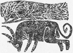 И вот они связали передние ноги быка косами одного монаха, а косами другого – его задние ноги. Когда они это сделали, один из монахов попробовал иглой сделать отверстие (в том, что они почитали выменем). Тогда бык вскочил, подпрыгнул и пустился бежать. У монахов оторвались косы. Народ с криком сбежался, стал смеяться и издеваться над монахами. А монахи бежали за быком, крича: «Наша корова уходит! Наша корова уходит!» Но бык на глазах у них ушел в лес.