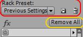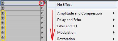 Красная область имеет те же значения которые описаны в "Верхняя часть окна эффектов" (рисунок выше). Желтая (Remove all) удаляет все эффекты из списка.