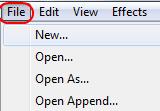 В появившемся окне выберите файл. После Open в списке идет Open As (открыть как), при его выборе вы также должны будете указать какой файл хотите открыть, после указания файла перед вами появится окно выбора его опций, качества. Т. е. если к примеру вы открываете Mono файл, но хотите что бы он открылся как стерео, то укажите это в опциях. Далее по списку идет Open Append (открыть приложение)…