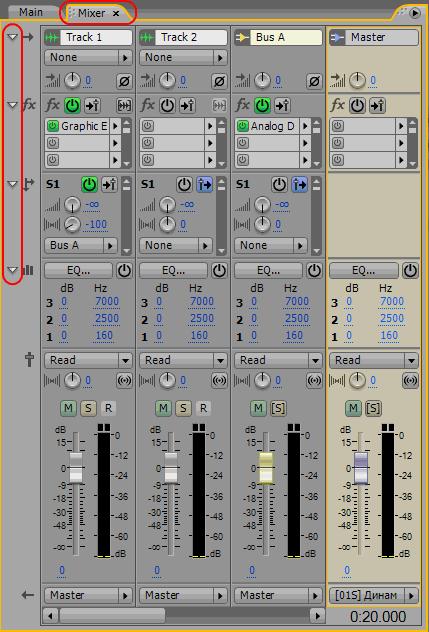 – Пре или пост фейдерный способ посыла на сенд канал (Bus Track);