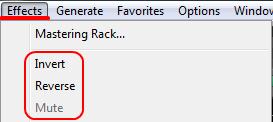 Мутирует (выключает) звук. Просто выделите ту область в звуке которую не хотите слышать и во вкладке Effect выберите Mute, в результате звук пропадет.