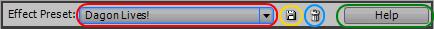 Красная область – нажмите на эту область и вы увидите список возможных пресетов эффекта;