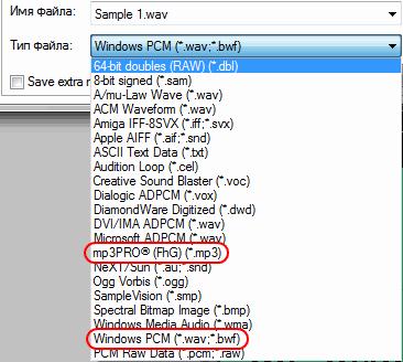 Формат файла (тип файла). Вообще, при сохранении аудио файлов, самые часто используемые форматы это .wav и .mp3.