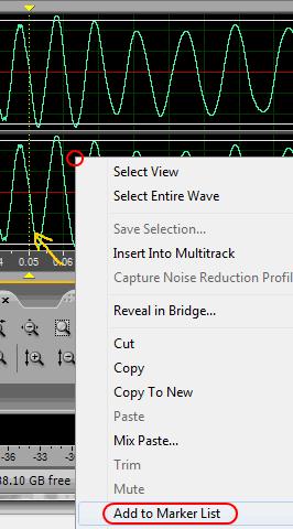 Если вам, к примеру, необходимо точно запомнить какое-либо место, то на это место можно поставить маркер. Для того, чтобы добавить маркер, поставьте желтую (вертикальную линию) в нужное место, щелкните по звуку правой кнопкой мыши и в списке выберите Add Marker List: