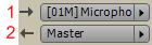 Малая красная область переход между режимами. Большая красная область, свернуть/развернуть элементы микшера.