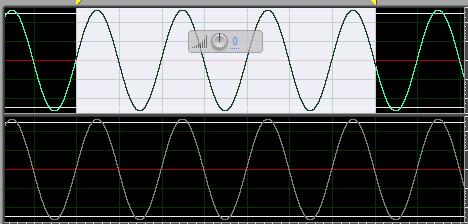 Также можно изменять масштаб громкости звука, если к примеру у вас звук очень тихий и его плохо видно. Для изменения этого масштаба просто наведите на правую область окна и начните крутить колесико мыши (Внимание, громкость не изменится изменится только отображение) см. рисунок ниже.